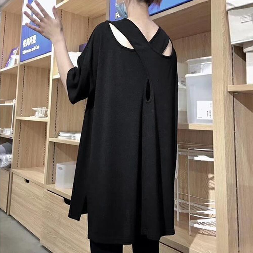 レディース 半袖Tシャツ ゆったり 無地 背中見せ トップス ゆるテロ 夏服大人カジュアル チュニック お洒落 tシャツ