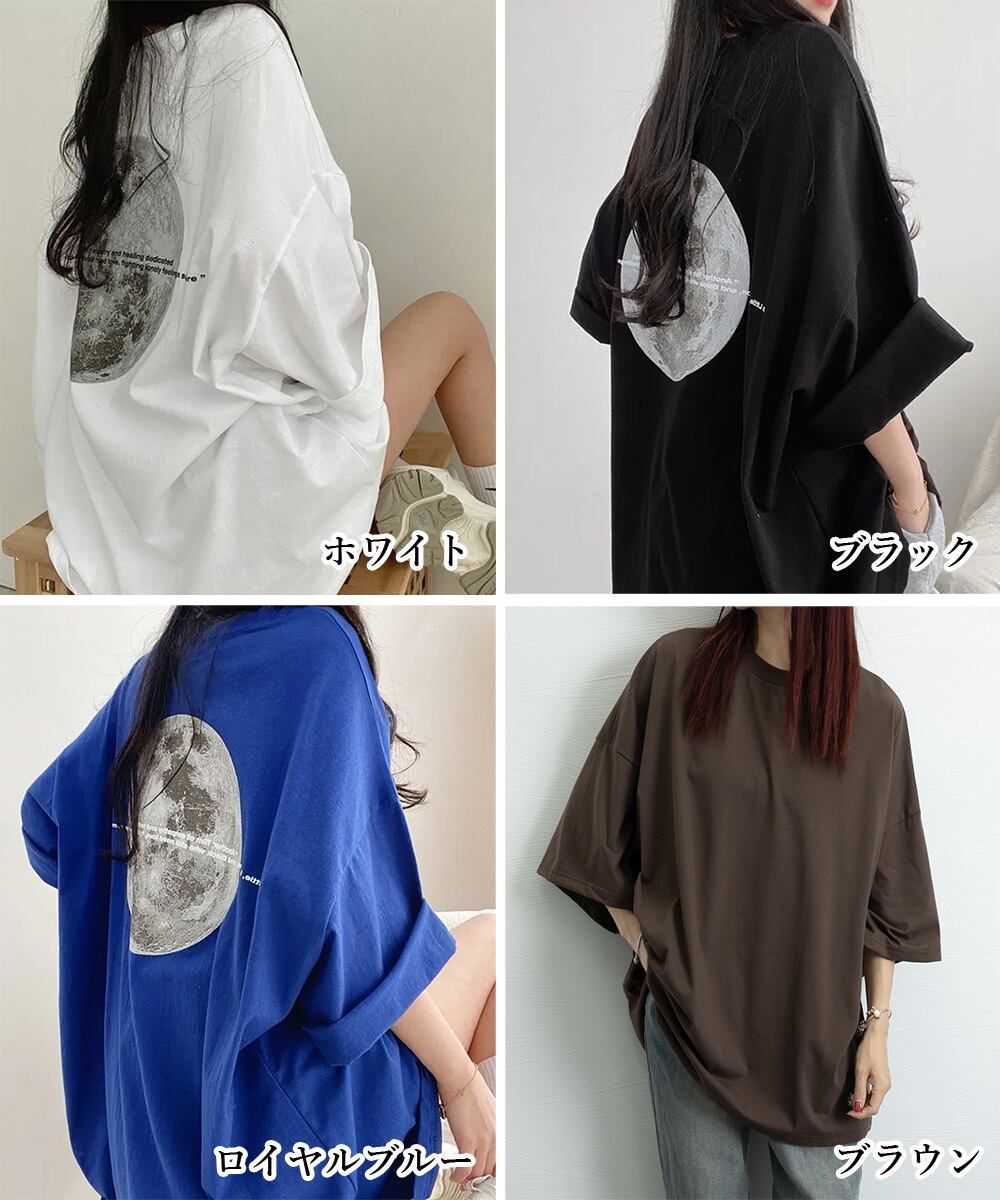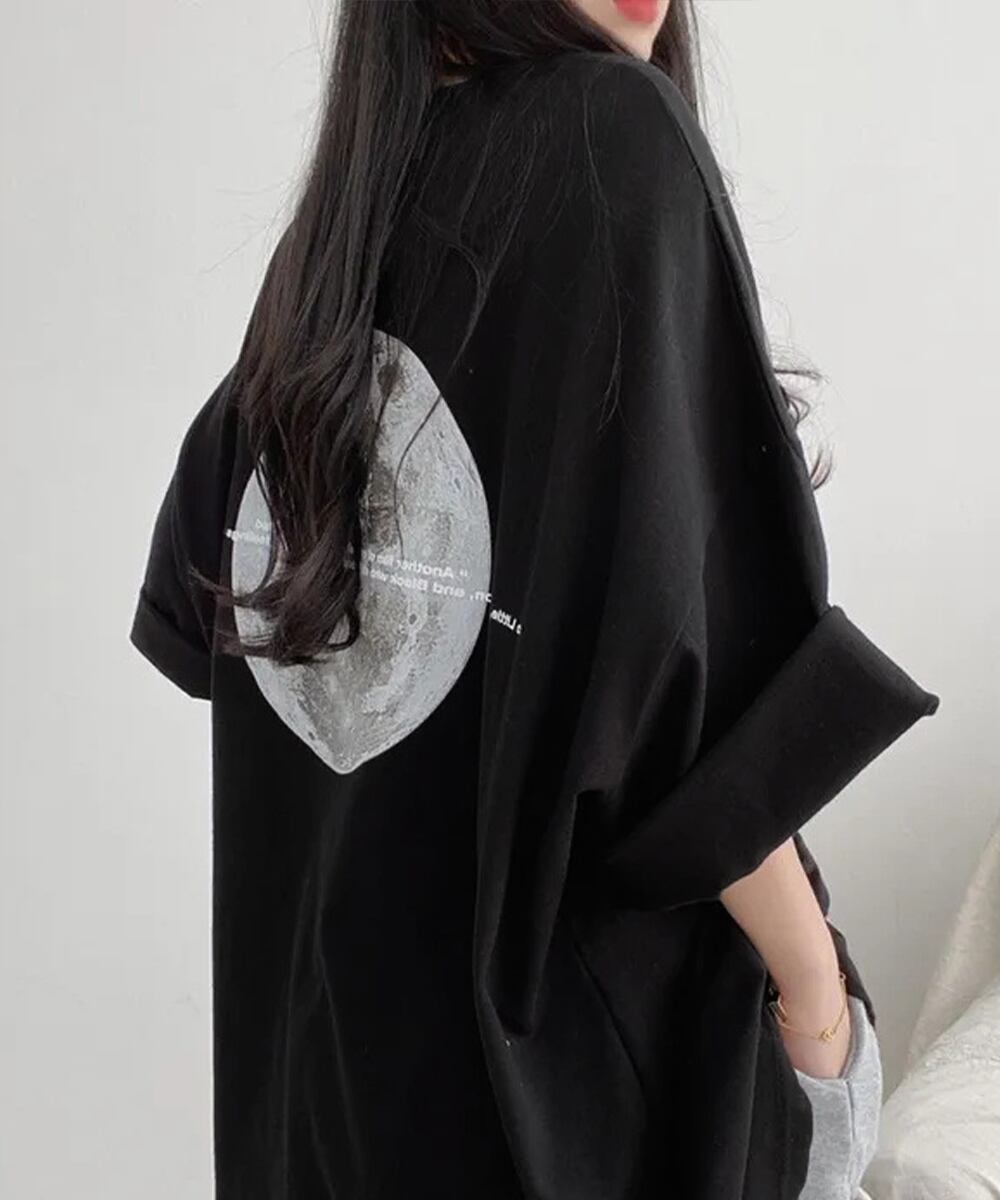 バックに大きく月のデザインがプリントされた、ストリート感たっぷりの半袖Tシャツ
