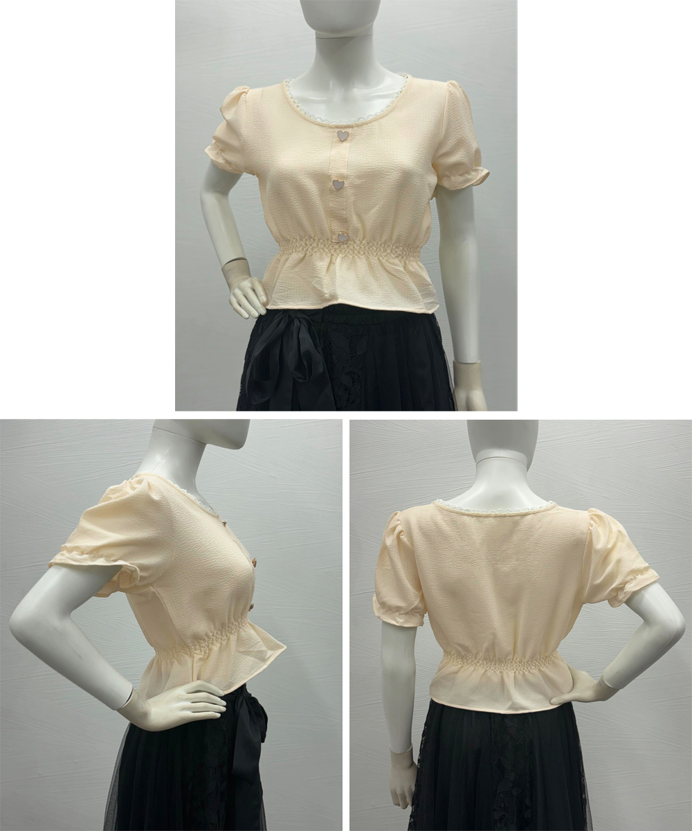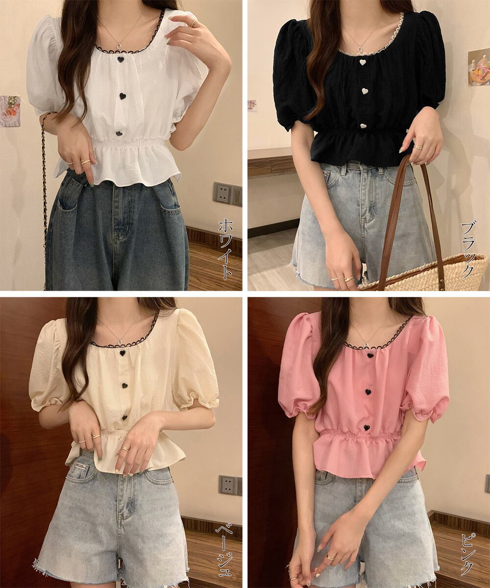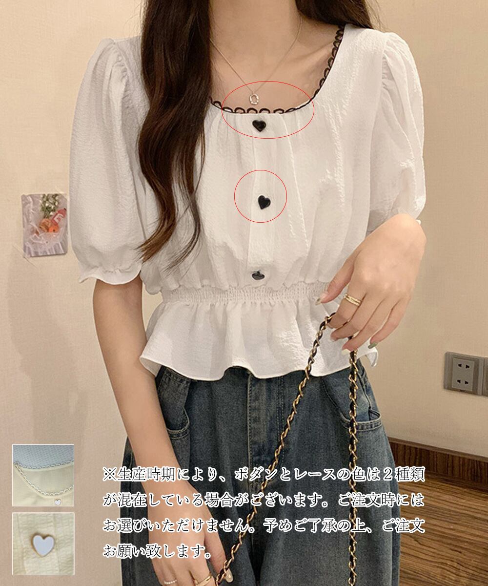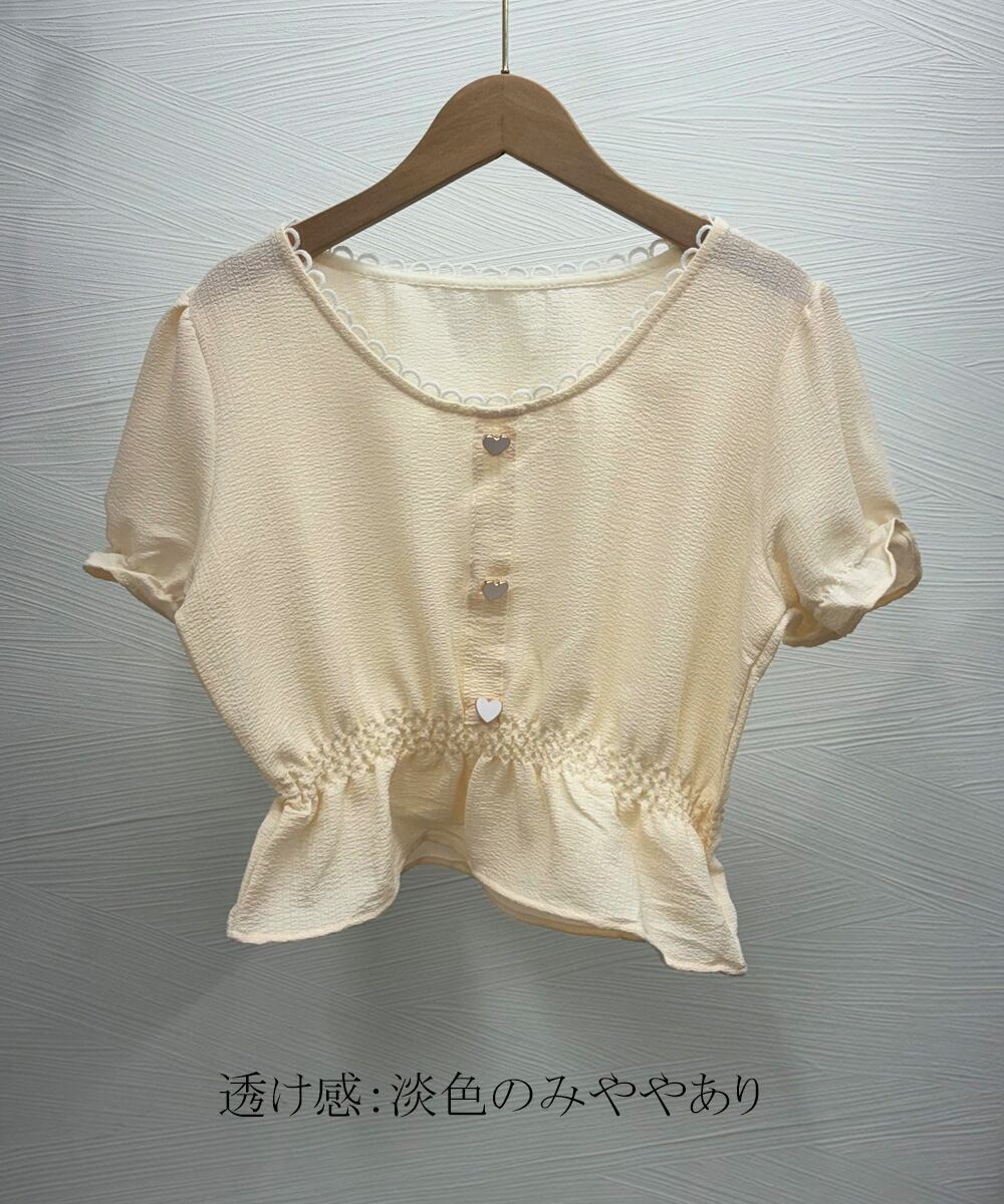 レディース 大人可愛い ショート丈シャツ パフスリーブ フェミニン フリルブラウス きれいめ トップス