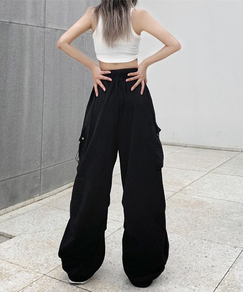ミリタリーパンツ 薄手パラシュートパンツ 春夏スポーツパンツ ダンス衣装 韓国風 ウエストゴム ストリート ワイドパンツ