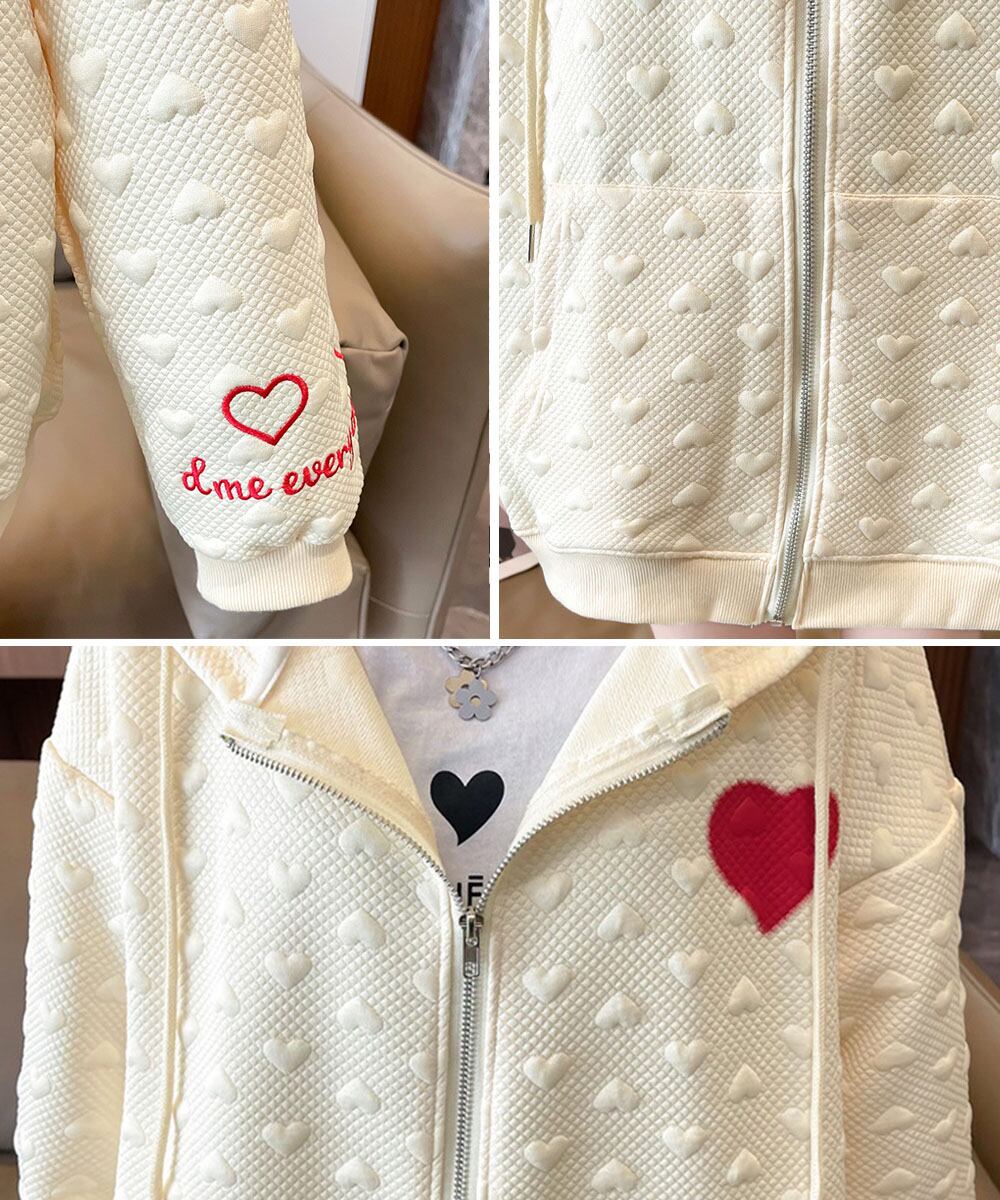 胸元に大きなハートロゴが目を引くジップアップパーカー