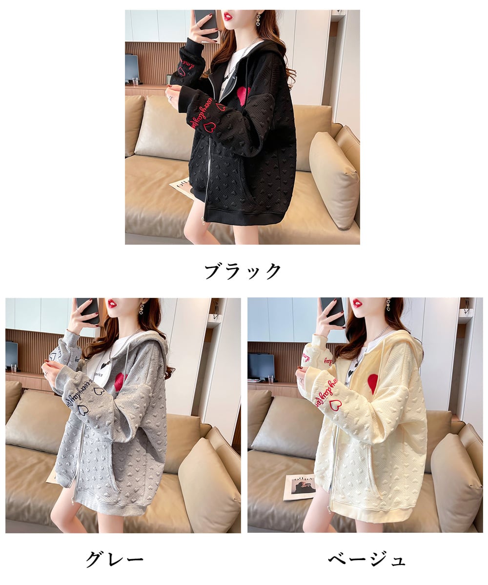 羽織り カジュアル ハート刺しゅうロゴ ストリート 着やせ