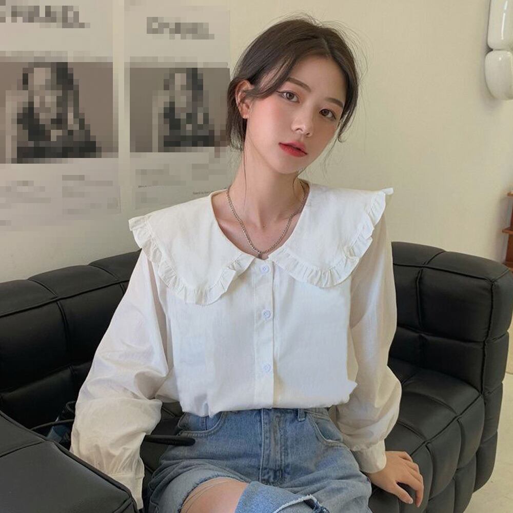レディース セーラーカラー カジュアル 体型カバー 可愛い シャツブラウス ステートメントカラー