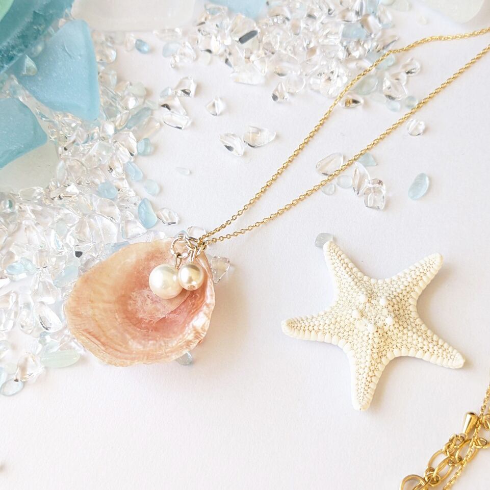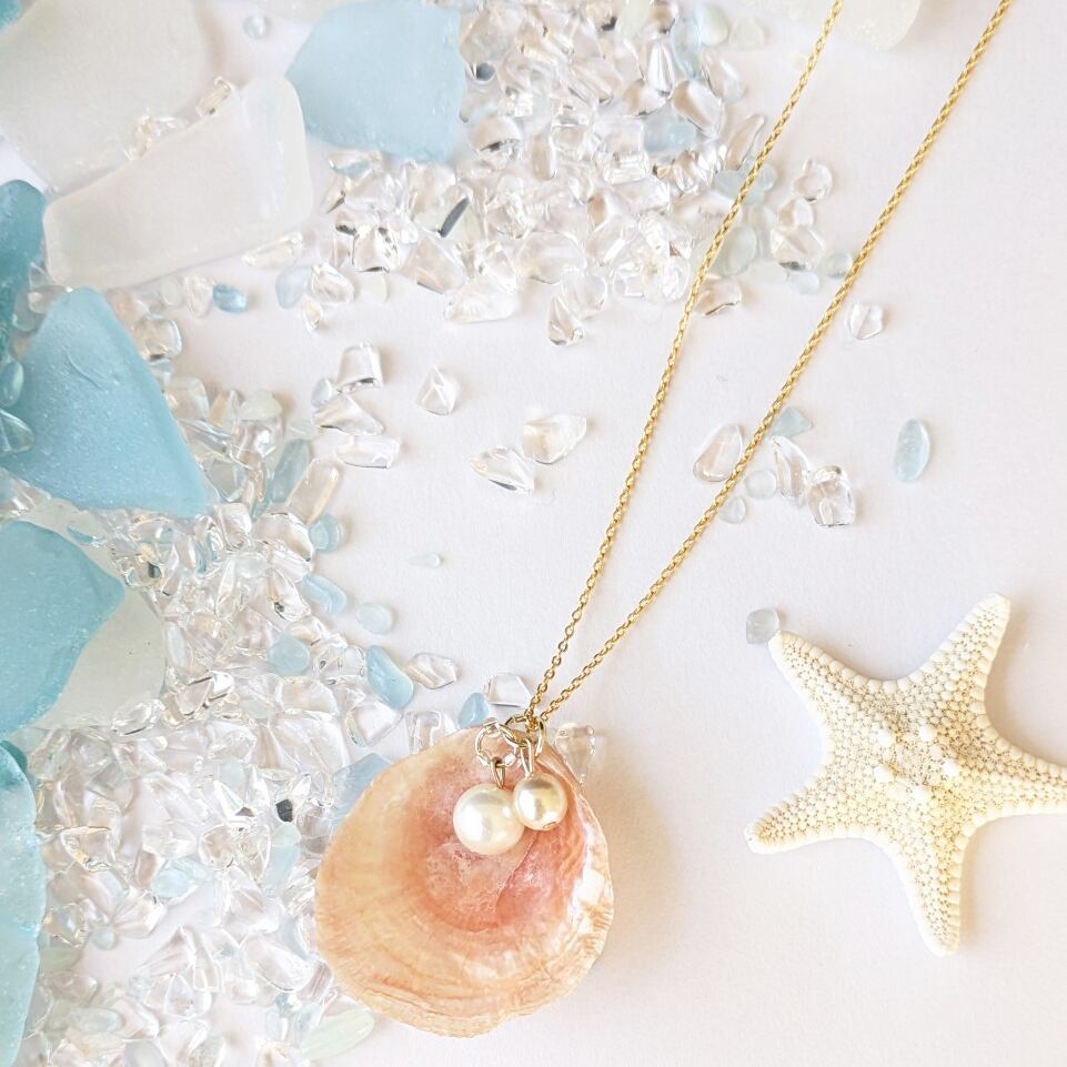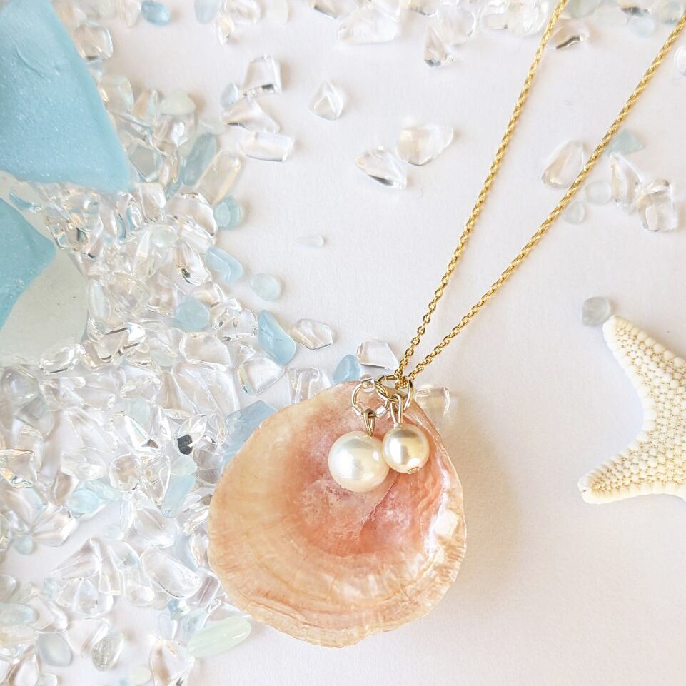ナミマガシワ天然シェルネックレス*ハンドメイド(チェーン約50cm)