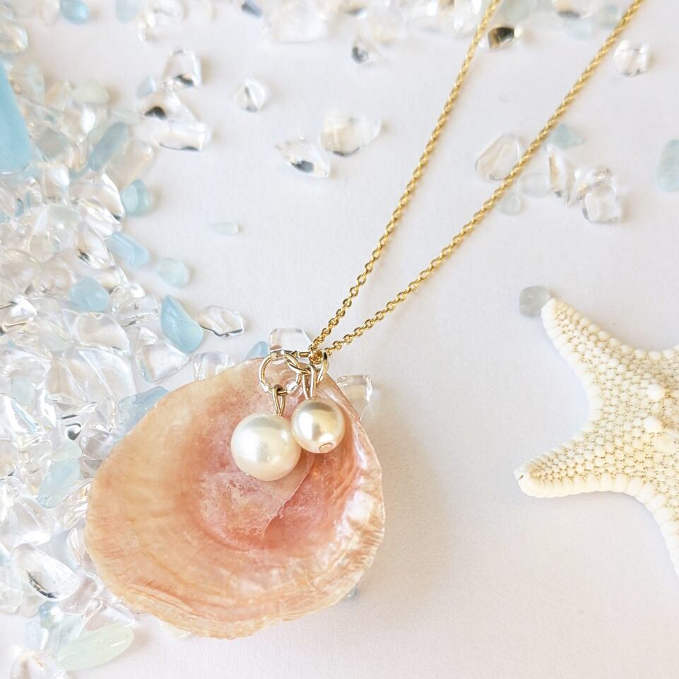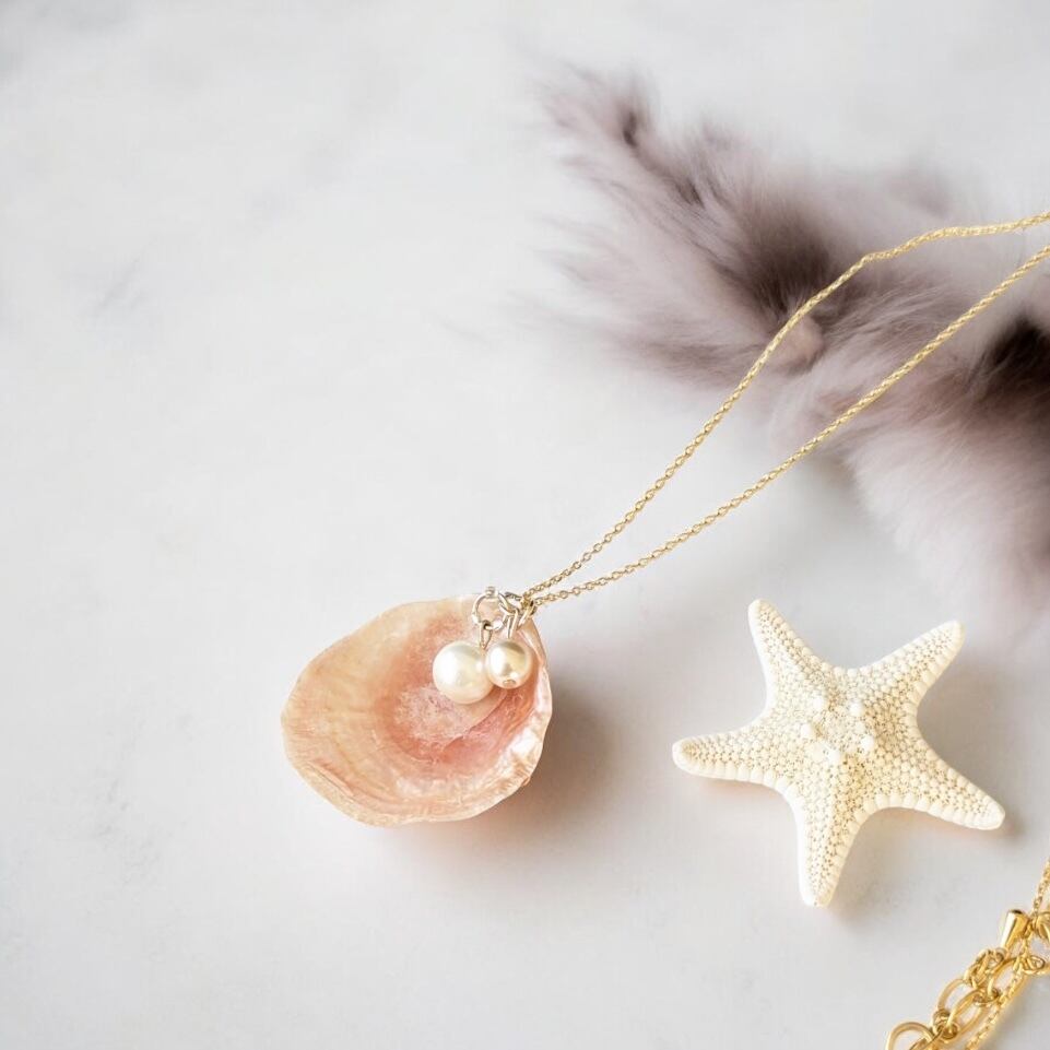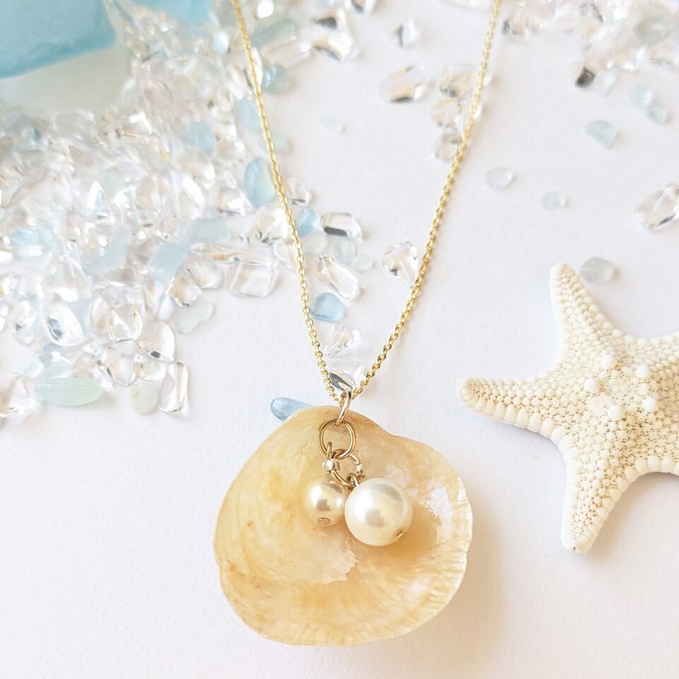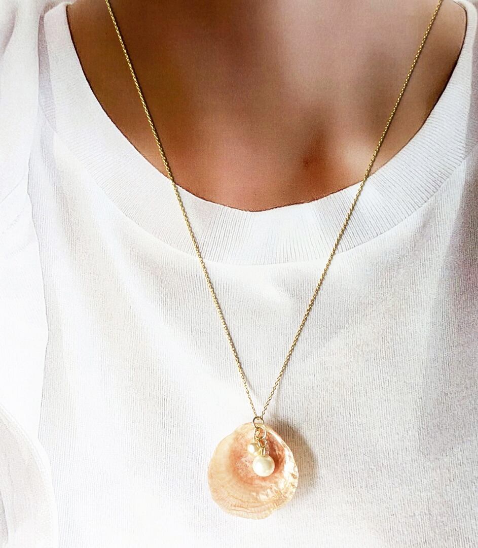 ナミマガシワ天然シェルネックレス*ハンドメイド(チェーン約50cm)