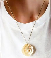 天然ナミマガシワを2枚重ねた立体的デザインのネックレス。