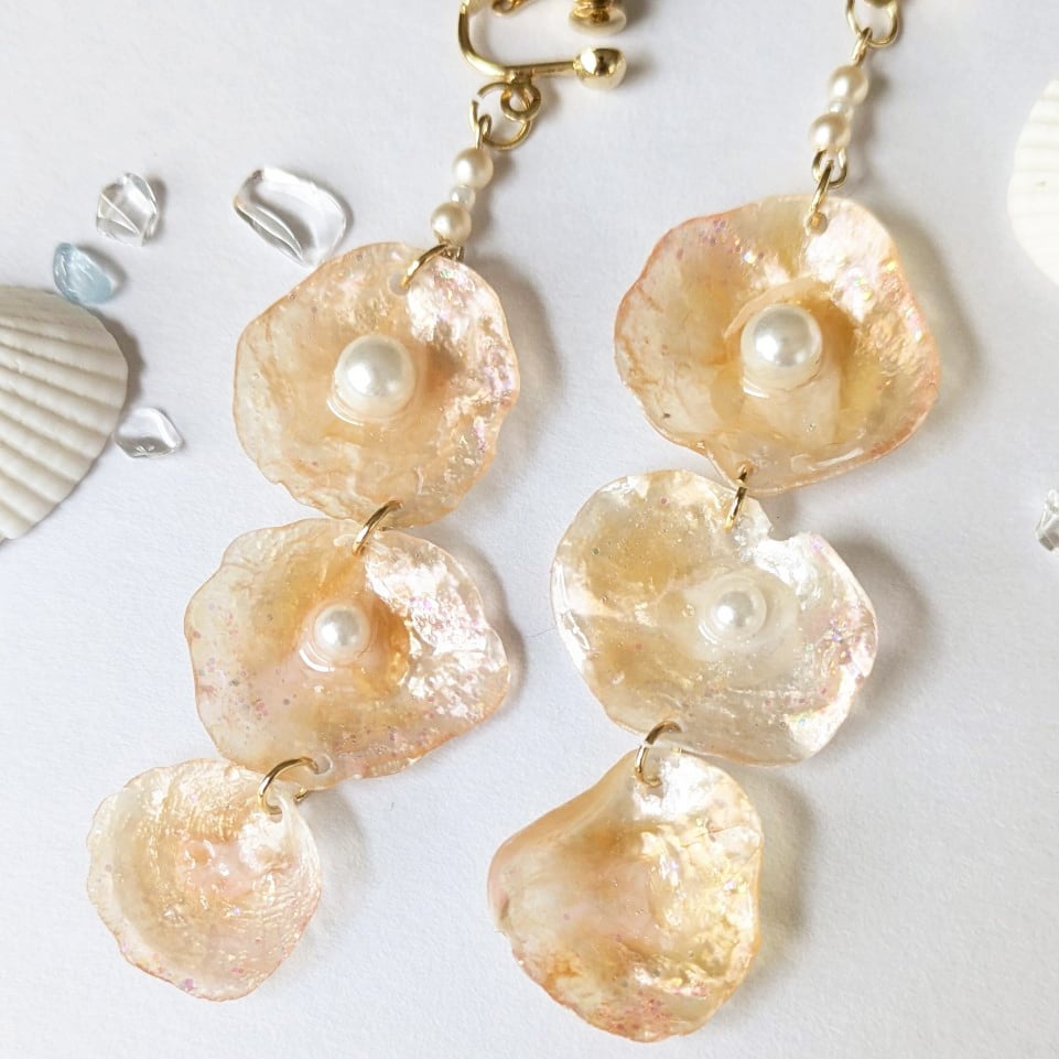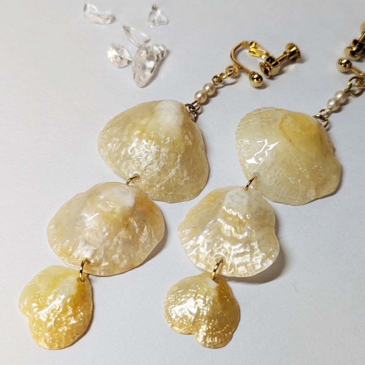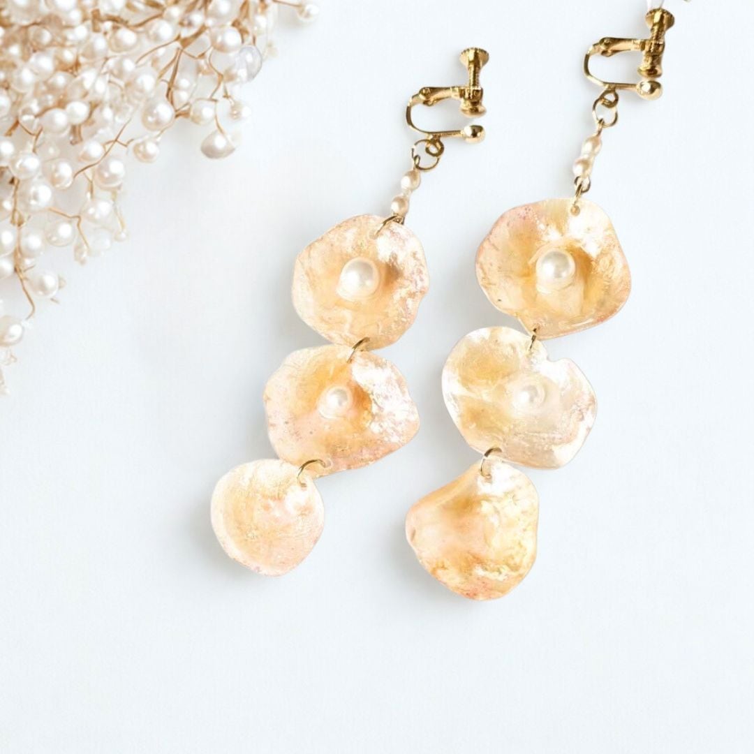 ナミマガシワ3連イヤリング|揺れる上品シェル【クリスマスギフト】