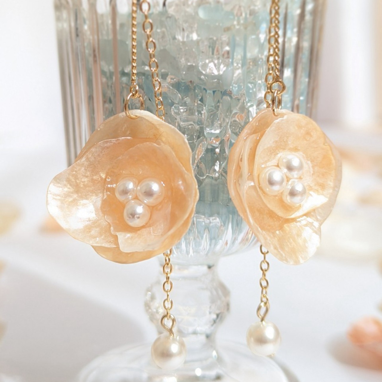 優しい色合いと軽やかなチェーンが、女性らしい華やかさをそっと演出します。