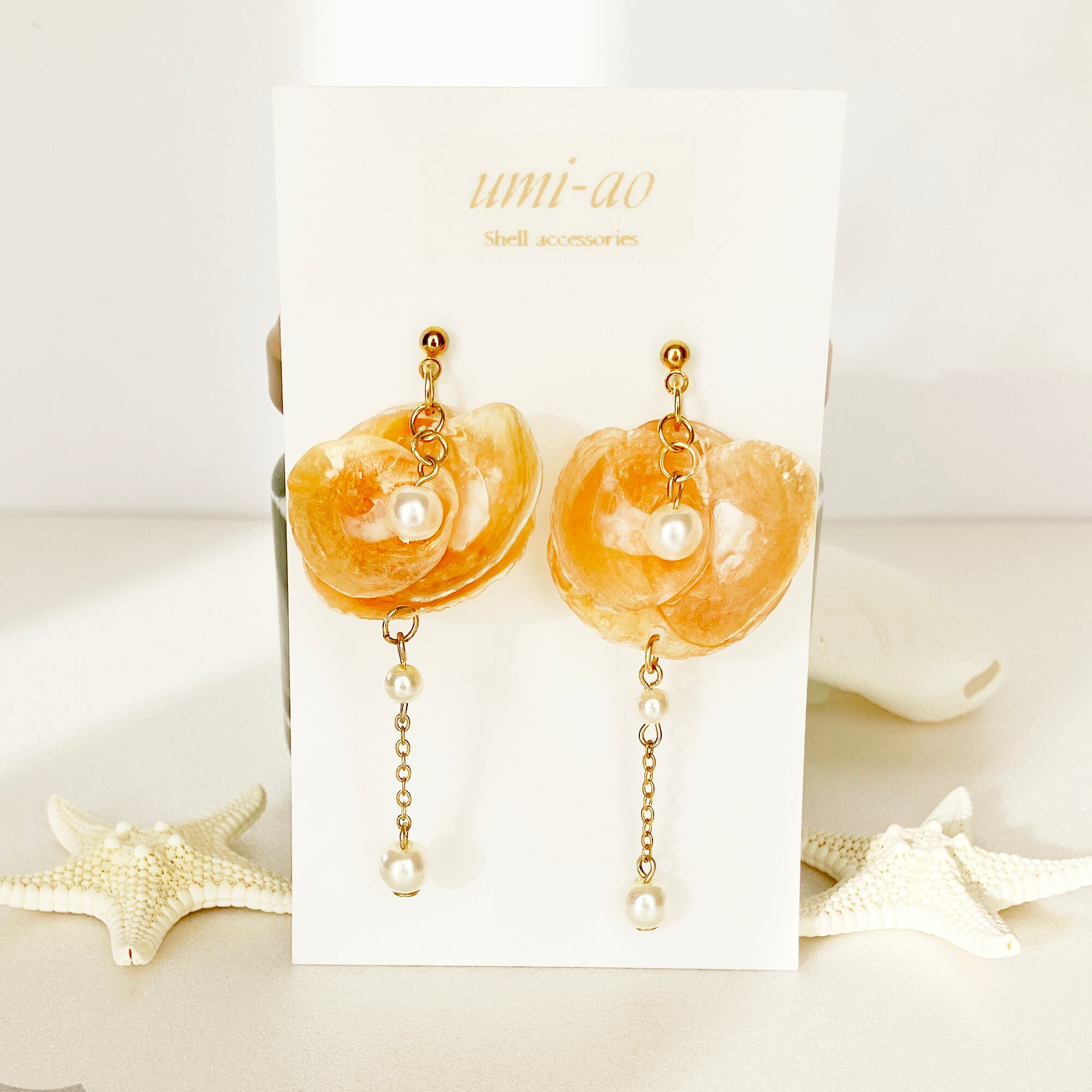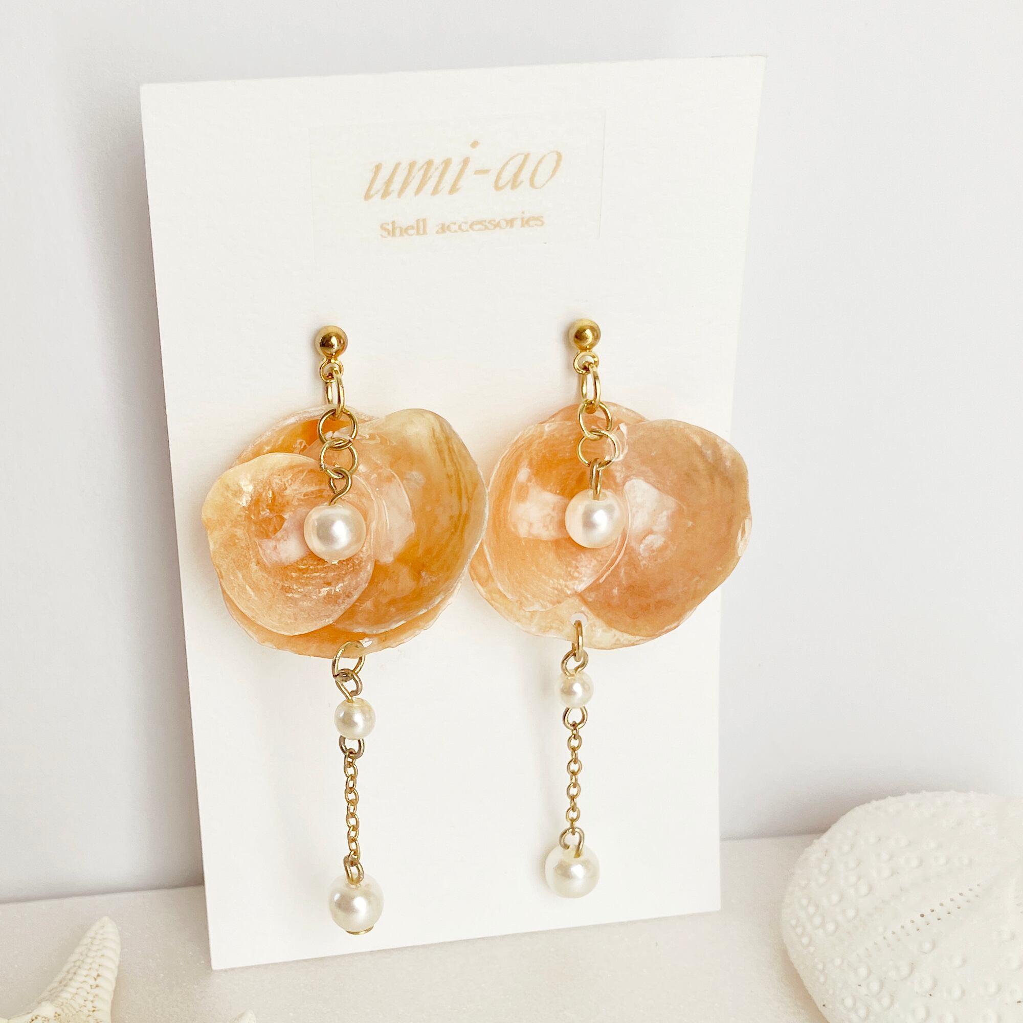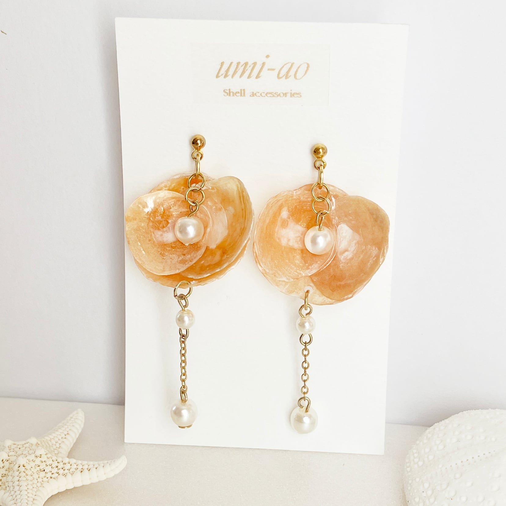 軽やかに揺れる*天然シェル×パールの華やぎピアス