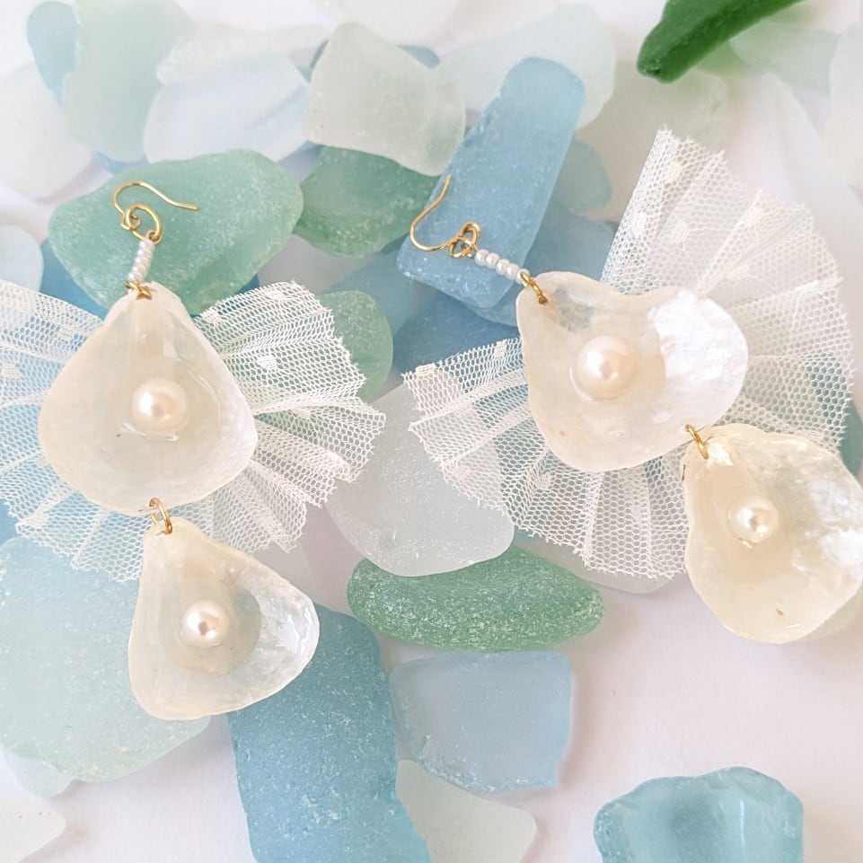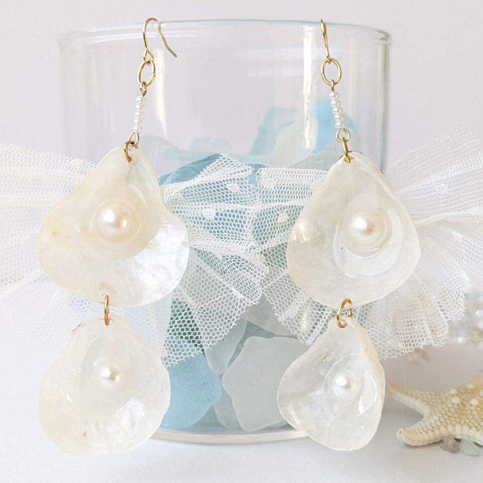 ナミマガシワの2連フックピアス|クリスマスギフトに最適な優雅な輝き