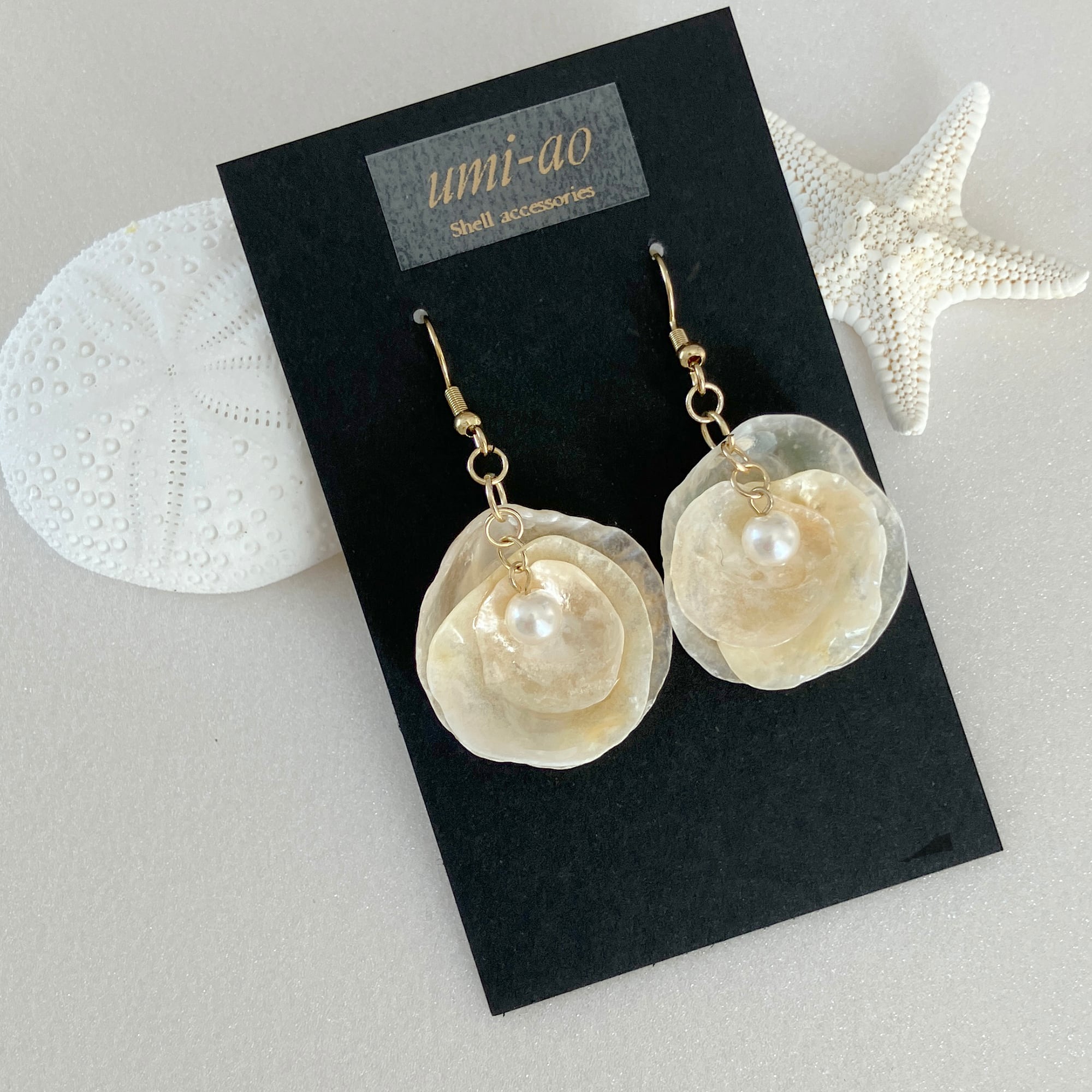 ✧ 素材:天然貝殻(ナミマガシワ)、パールビーズ